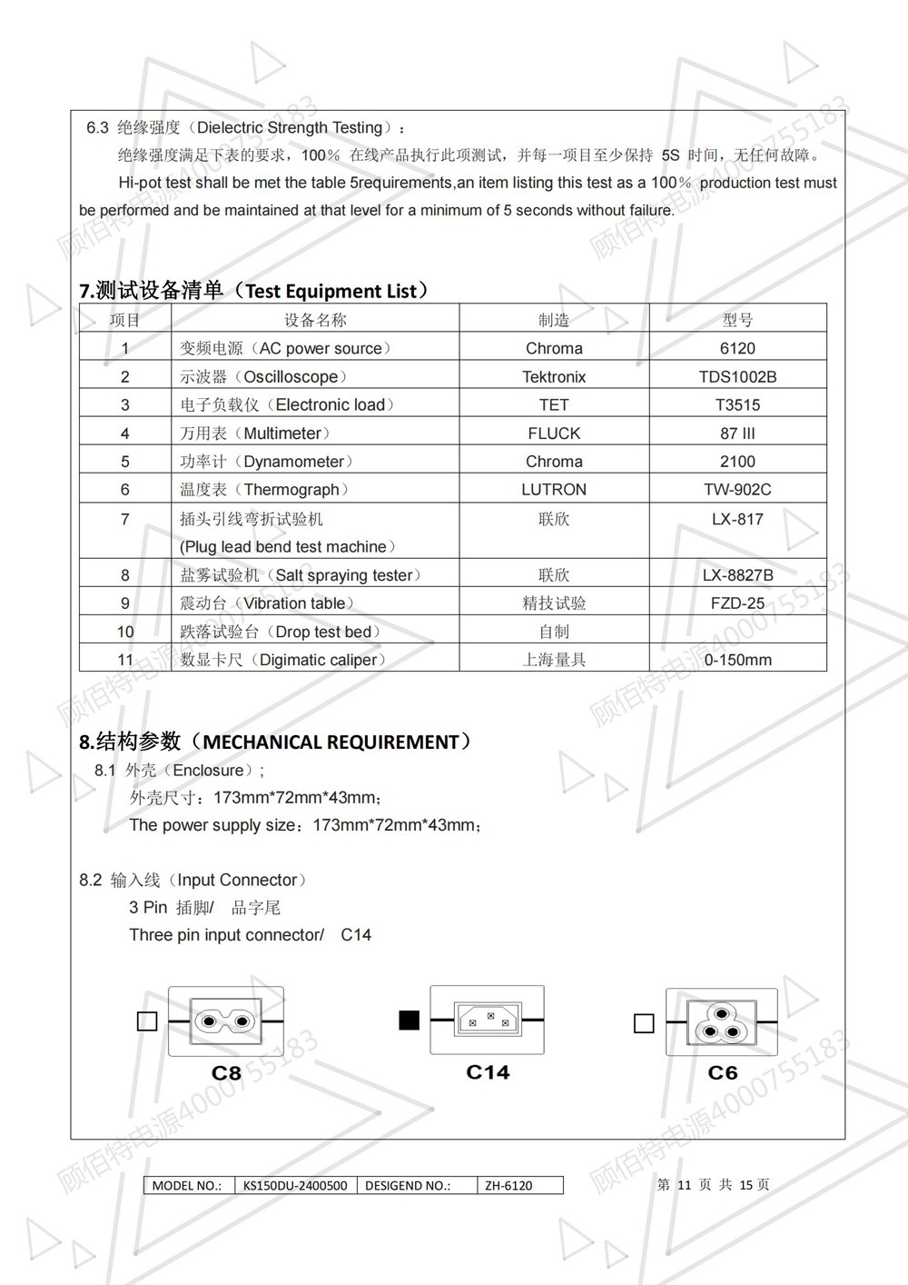 24V5A電源適配器規(guī)格書資料詳細(xì)描述了一款120W(連續(xù)輸出功率)開關(guān)電源的電氣性,結(jié)構(gòu)性及環(huán)境等要求。